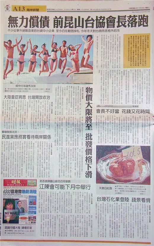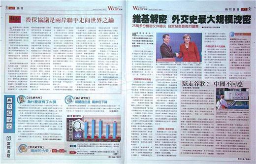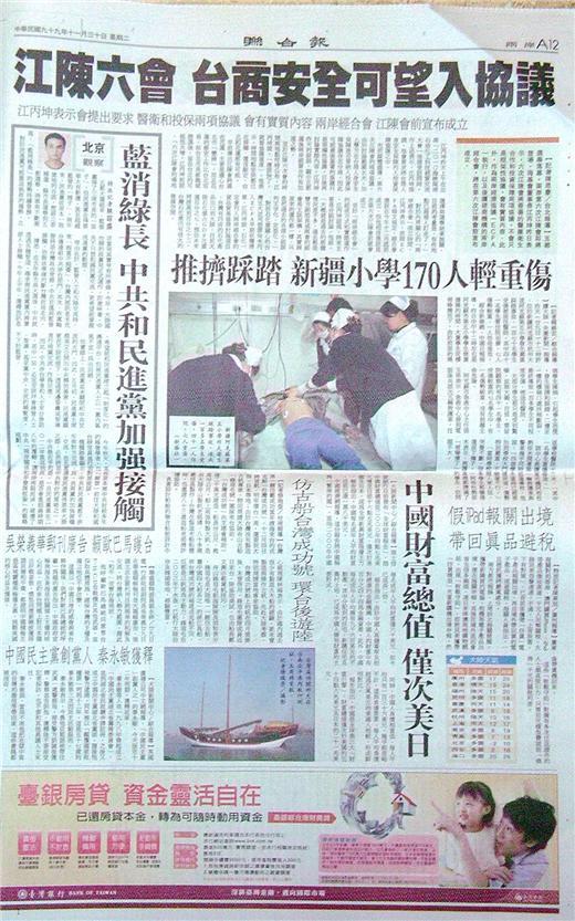 台灣主要報紙大陸版要聞標題一覽 (11月30日)