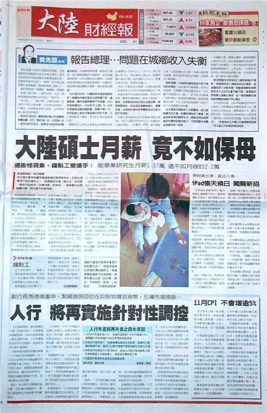 ■大陸碩士月薪 竟不如保母