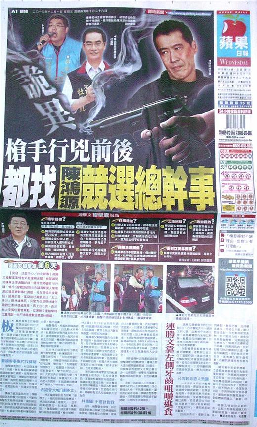 ◆蘋果日報:詭異 槍手行兇前後 都找陳鴻源競選總幹事