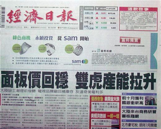 ◆經濟日報:面板價回穩 雙虎產能拉升