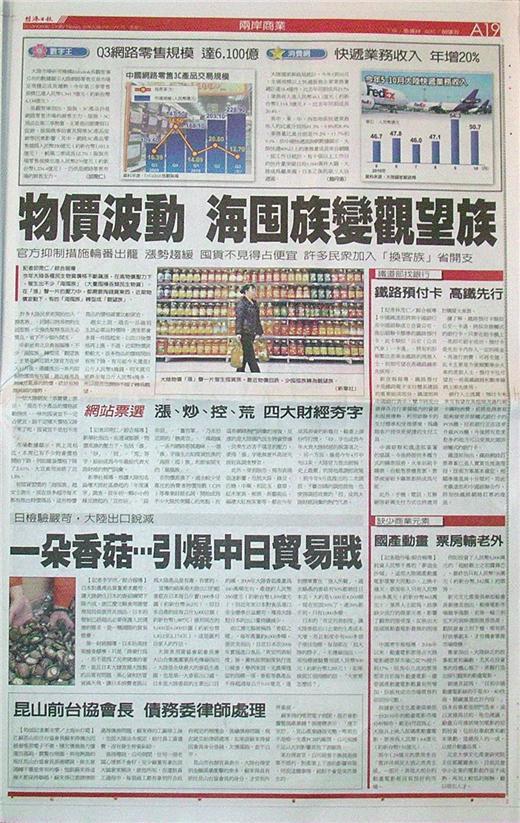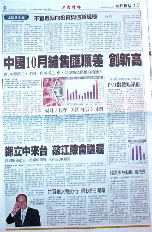 台灣主要報紙大陸版要聞標題一覽 (12月1日)