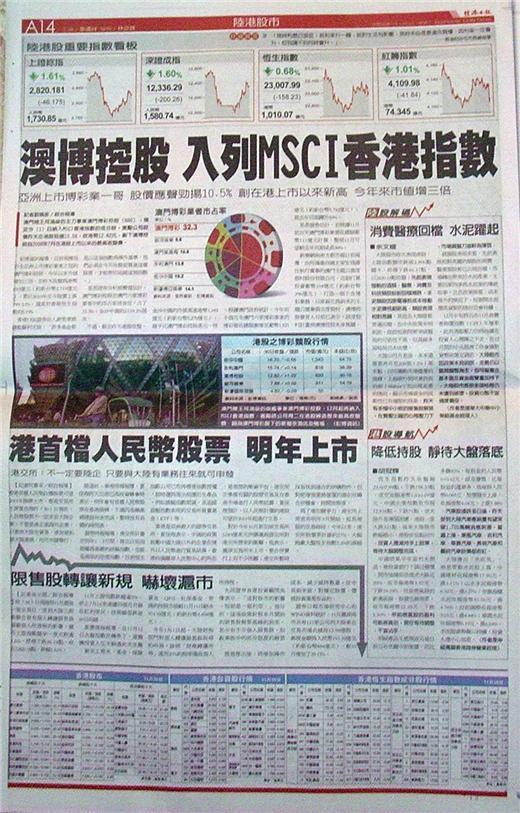 ■澳博控股 入列MSCI香港指數