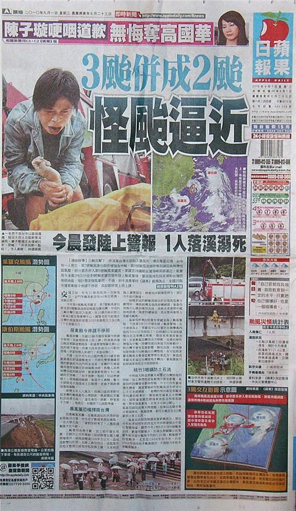 ◆蘋果日報:3颱併成2颱 怪颱逼近