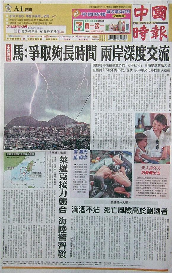 台灣主要報紙頭條要聞一覽( 9月 1日)