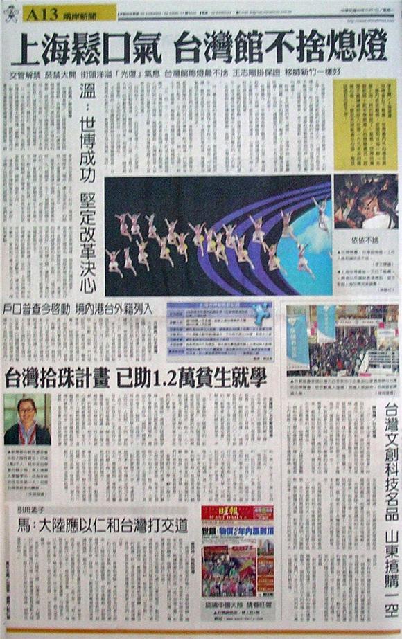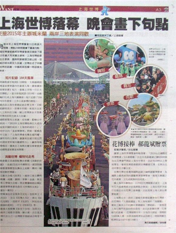 世博會拉下帷幕,世博園內外心情各異,園內依依離情,街頭則洋溢一股「光復上海、終於解脫了」氣息。世博台灣館晚間十點半舉辦感人的熄燈儀式,經理王憲輝總結投入世博一九九天來的複雜心情:「酸甜苦辣點滴在心頭,有成就感但也很不捨!」