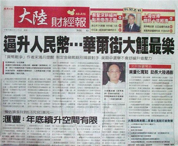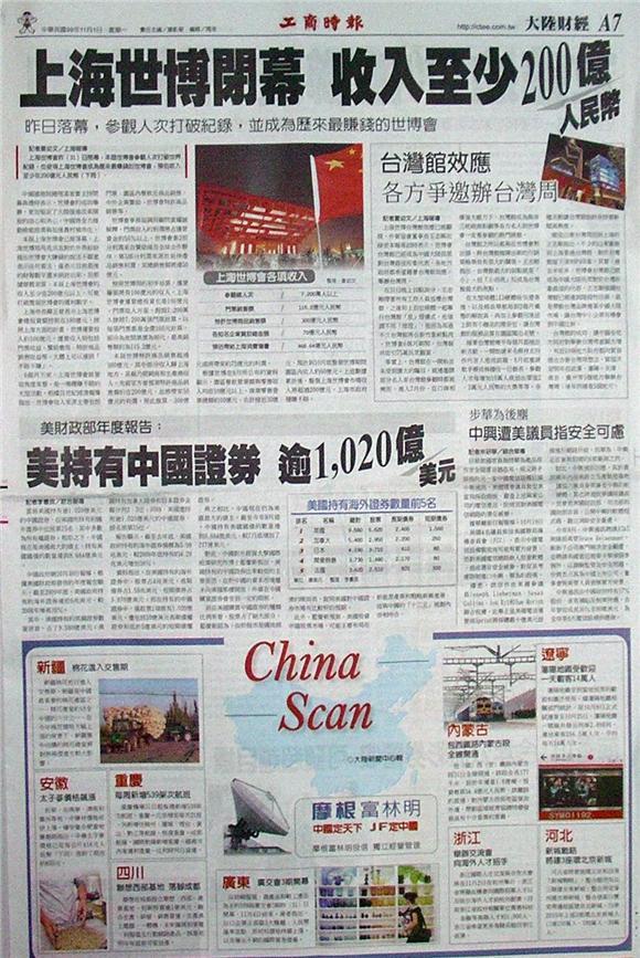 台灣主要報紙大陸版要聞標題一覽 (11月 1日)