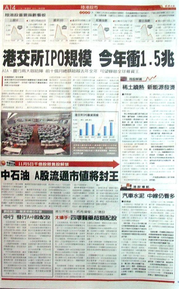 香港交易所在友邦保險與中國農業銀行兩檔巨無霸企業上市的加持下,今年前十個月的IPO募資規模已突破2009全年紀錄。