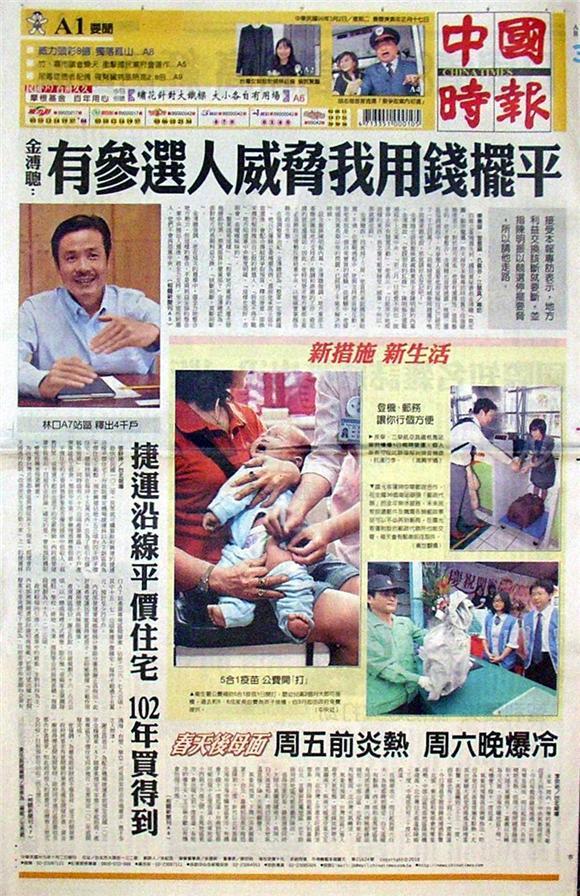 ◆中國時報:金溥聰:有參選人威脅我用錢擺平