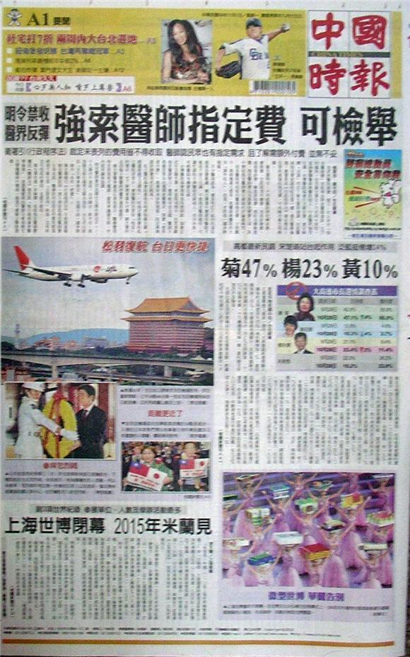 台灣主要報紙頭條要聞一覽(11月 1日)