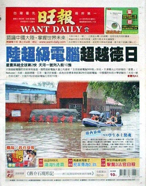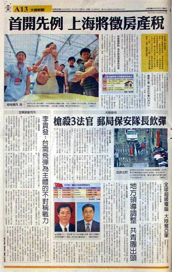 台灣主要報紙大陸版要聞標題一覽 (6月2日)