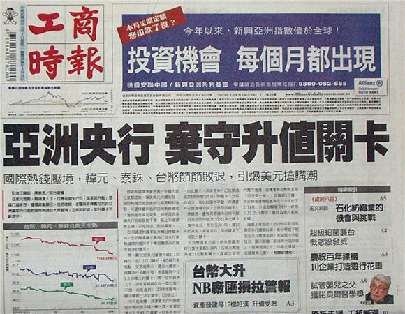 ◆工商時報:亞洲央行棄守升值關卡