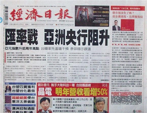 ◆經濟日報:匯率戰 亞洲央行阻升