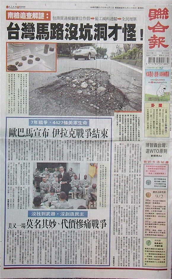 台灣主要報紙頭條要聞一覽( 9月 2日)