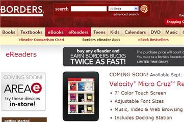 Borders也計畫於10月之前,在實體書店中開闢「Area-e」數位商品專區,用以展示與販售電子閱讀器。