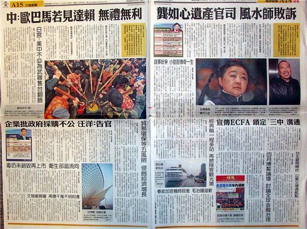台灣主要報紙大陸版要聞標題一覽 (2月3日)