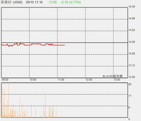 奇美電在7月31日決議現金增資發行價格,訂定每股23元,預計募集約11億元資金,奇美材8月初除權息後股價破底反彈,在上半年財報公布表現不俗激勵下,股價走勢強勁一路攀 高,今天更上演法說會行情,股價開平走高,漲幅擴大至接近2.5%,站上所有均線,股價來到約31元價位。