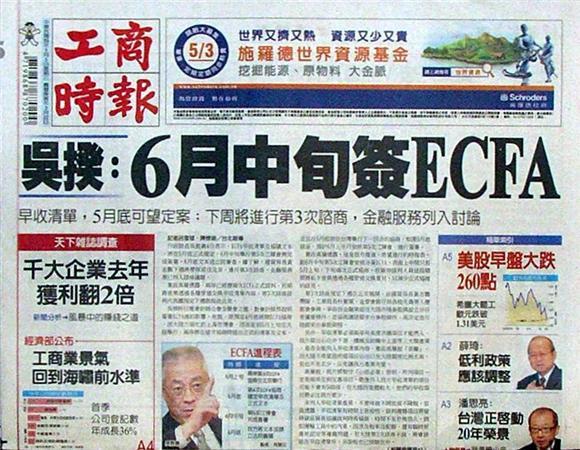 ◆工商時報:6吳揆:月中旬簽ECFA