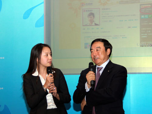 我注意最近很多機構設計自己的微博產品,包括招商銀行,我們看了招商銀行最新的粉絲數量,不知道馬行長有沒有注意到,已經將近10萬人了,作為機構微博來說是一個快速的增長。現在在上面展示的是我們一位粉絲,是招商銀行的頁面,招商銀行的粉絲數是96679,馬行長我們今天做了一個特別的設計,將近10萬個粉絲至少對于招商銀行還是非常關注,而且喜愛的,所以他們才會成為招商銀行的粉絲,我們不可能把他們全部請來,我們請了一個代表,這位代表是招商銀行第95555位粉絲,現在請她到台上來,不知道我們招商銀行的粉絲是不是都是這樣的美女。
