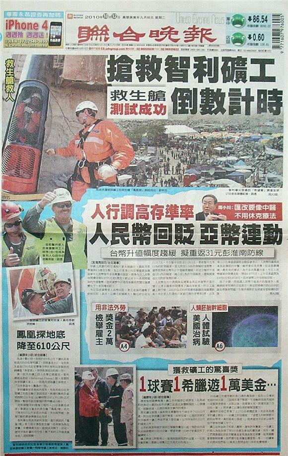 再過十數小時,受困於600多公尺下礦坑長達兩個月的33名智利礦工,即將重見天日,全世界及當地1700名記者麇集守候於智利北部聖荷西銅礦區「希望營」,等待救援成功的第一刻。
