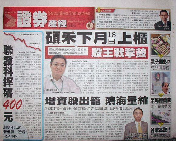 台灣主要晚報標題一覽 (10月15日)