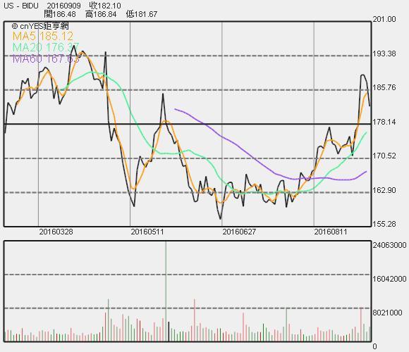 百度股價收盤連續線圖