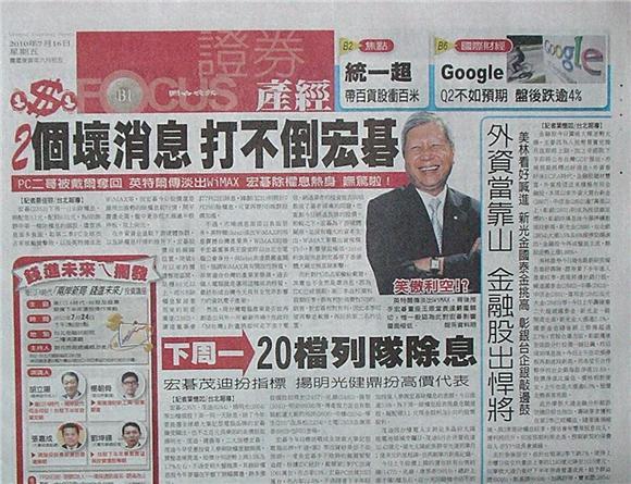 台灣主要晚報標題一覽 (7月16日)