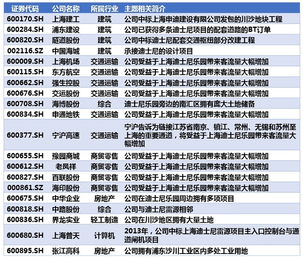 將從上海迪士尼樂園受益的包括房地產、建筑建材、交通運輸等行業公司,受益消費拉動的旅遊、商貿零售等行業公司。