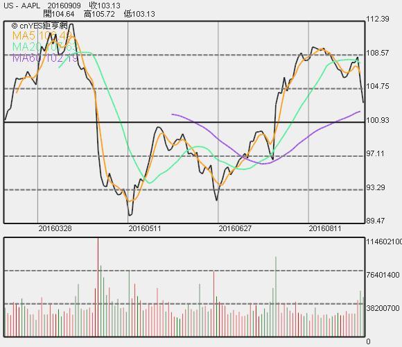 蘋果股價收盤連續線圖