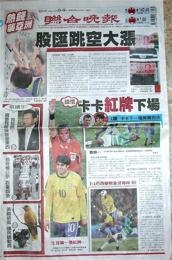 台灣主要晚報標題一覽(6月21日)