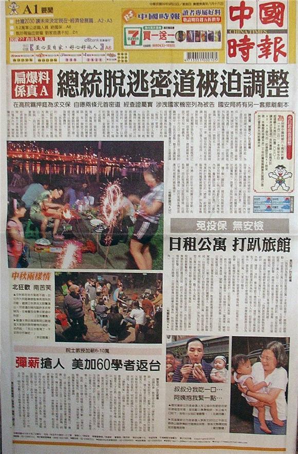 ◆中國時報:扁爆料係真A 總統脫逃密道被迫調整