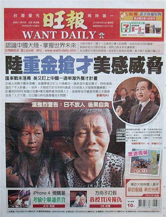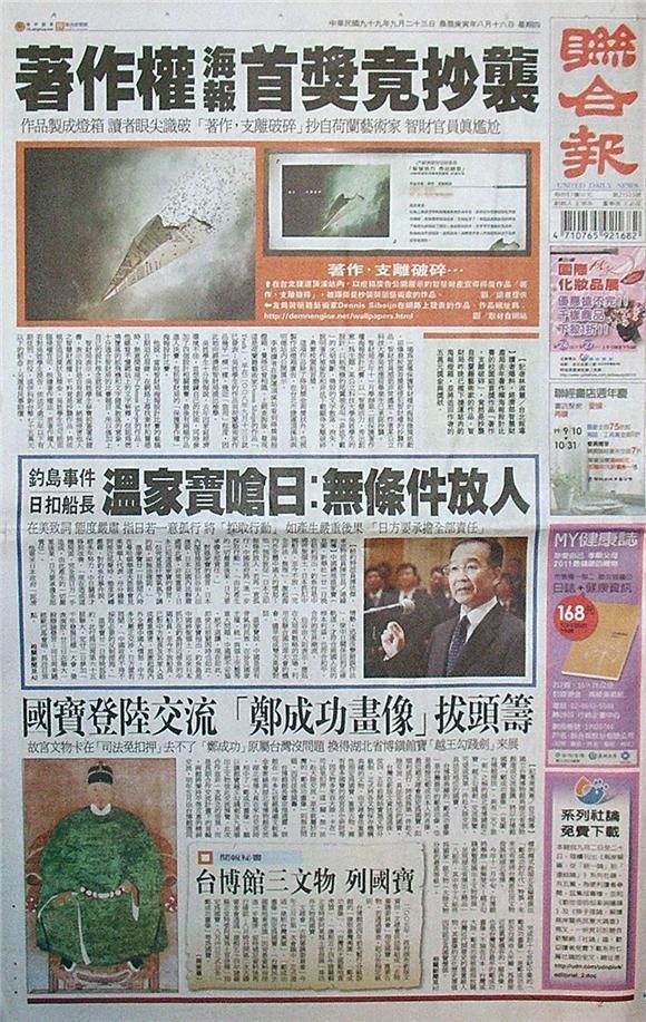 台灣主要報紙頭條要聞一覽( 9月23日)