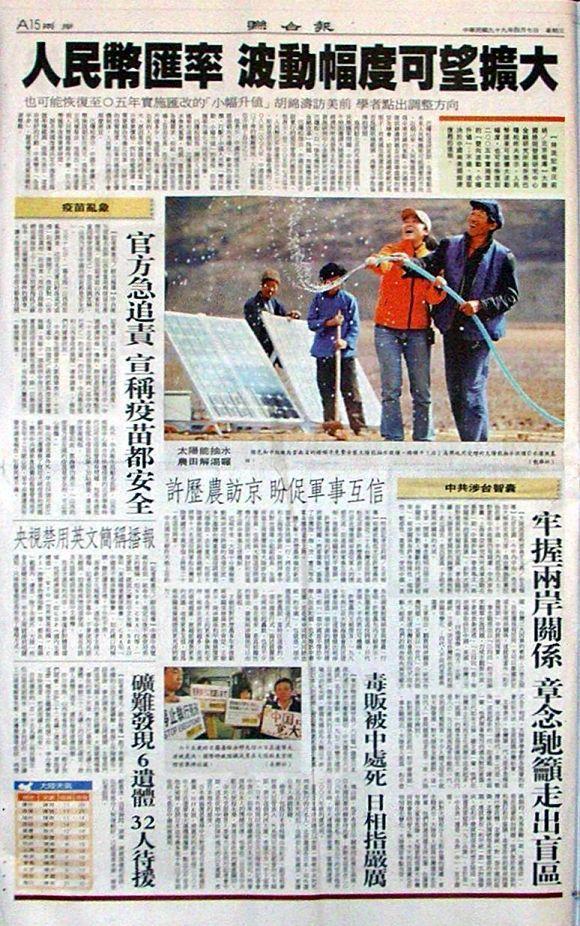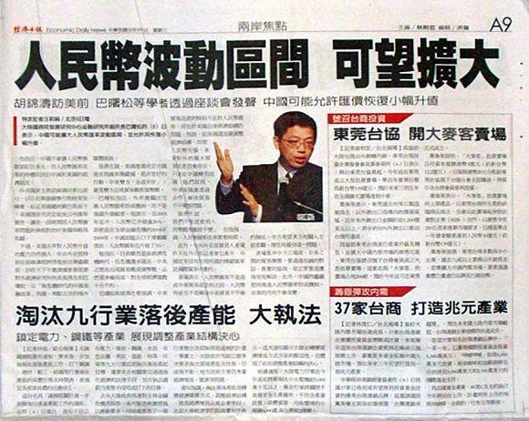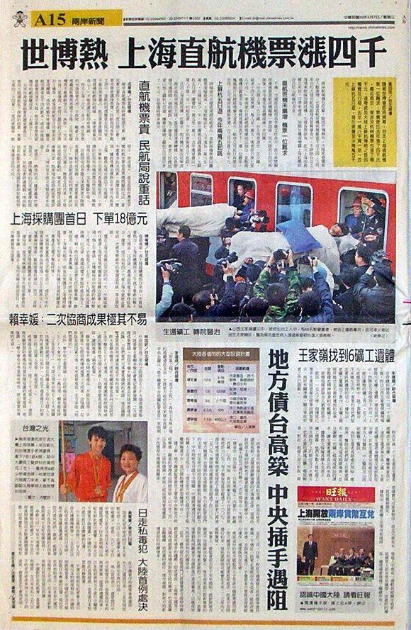 台灣主要報紙大陸版要聞標題一覽 (4月7日)