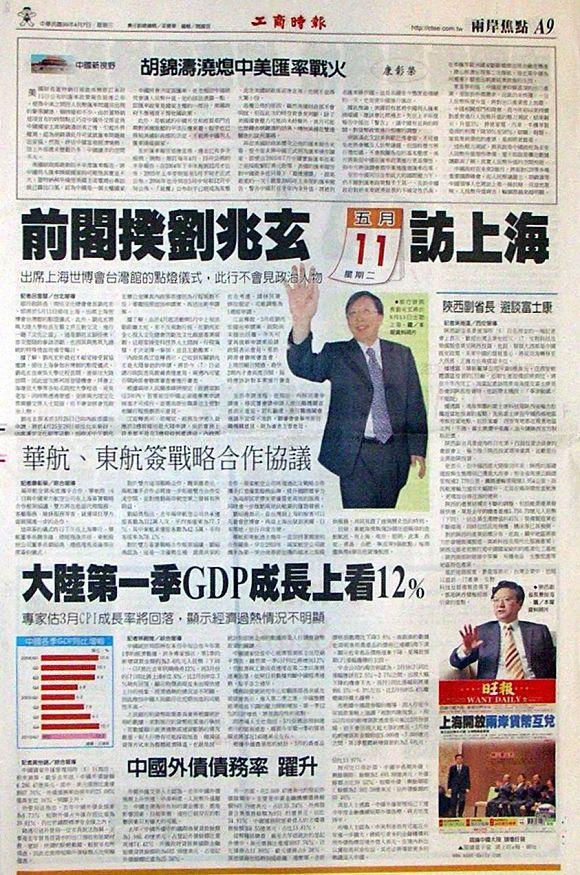 ■前閣揆劉兆玄 五月11星 期 二 訪上海