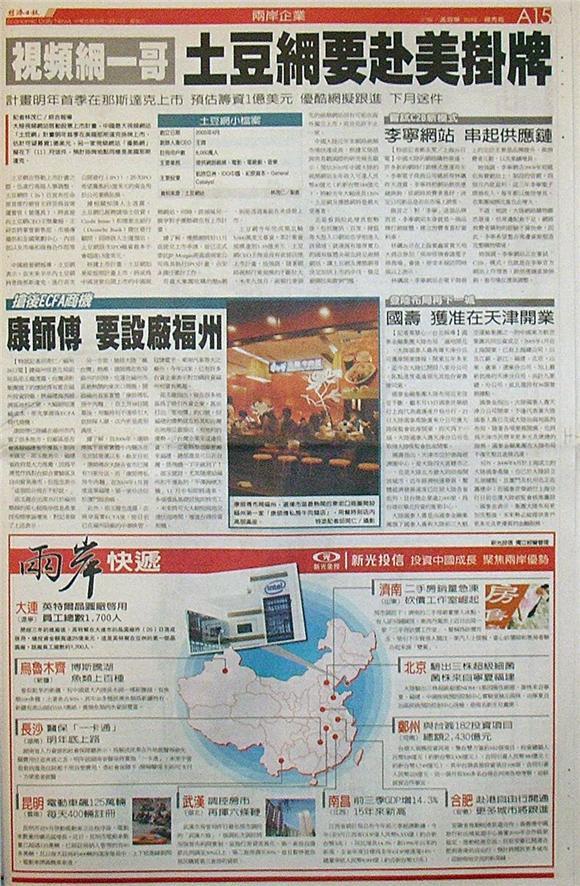大陸視頻網站啟動股票上市計畫,中國最大視頻網站「土豆網」計畫明年首季在美國那斯達克掛牌上市,估計可望募資1億美元,另一家視頻網站「優酷網」擬在下(11)月送件,預計掛牌地點同樣是美國那斯達克。