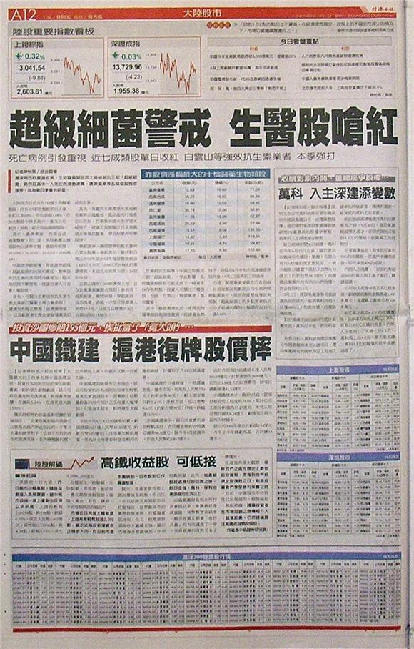滬深兩市昨震盪收黑,生物醫藥類股因大陸檢測出三起「超級細菌」病例且其中一人死亡而漲勢凌厲,廣濟藥業等五檔個股強收漲停,成為第四季看俏新星。