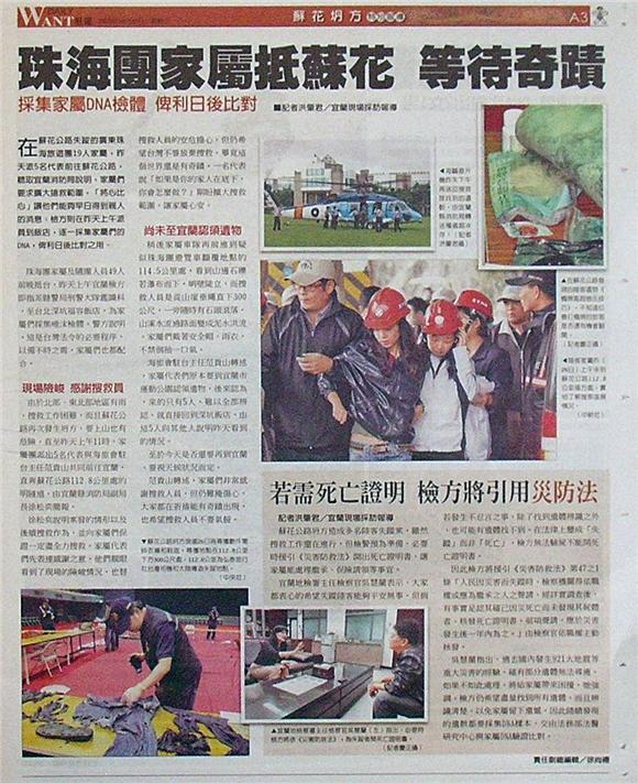 ■珠海團家屬抵蘇花 等待奇蹟