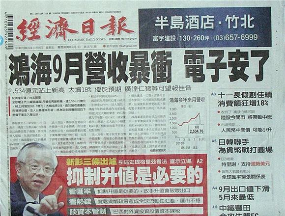 ◆經濟日報:鴻海9月營收暴衝 電子安了