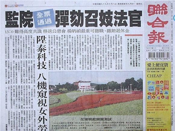 ◆聯合報:監院全票通過彈劾召妓法官