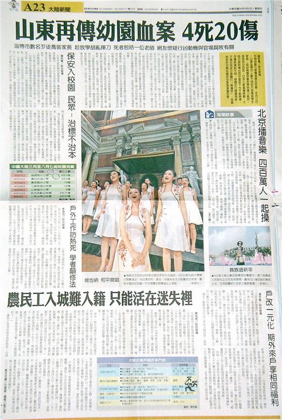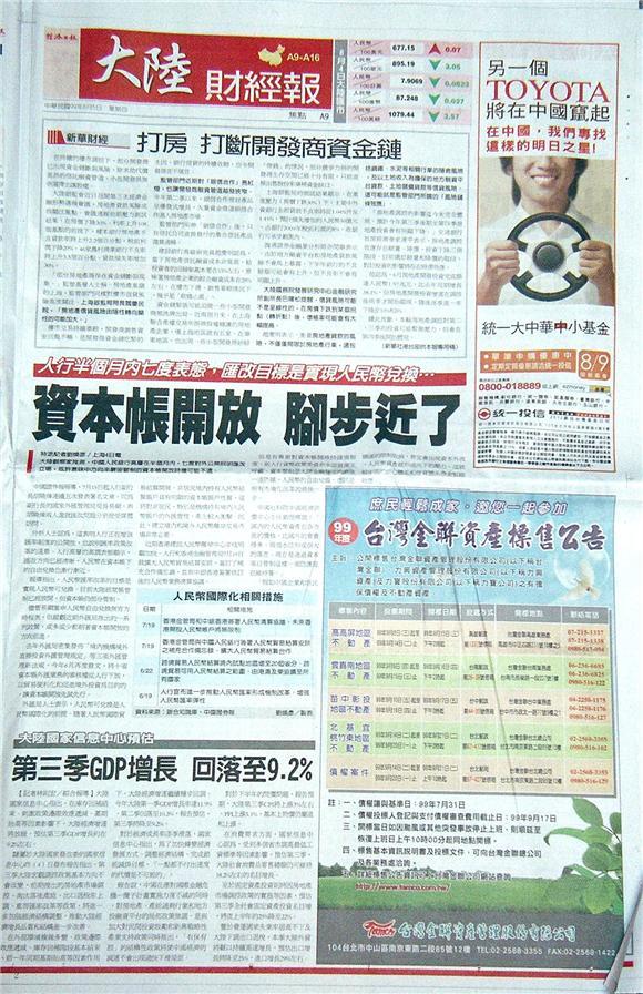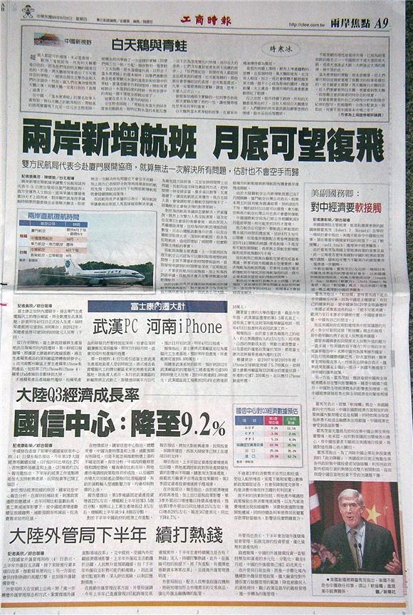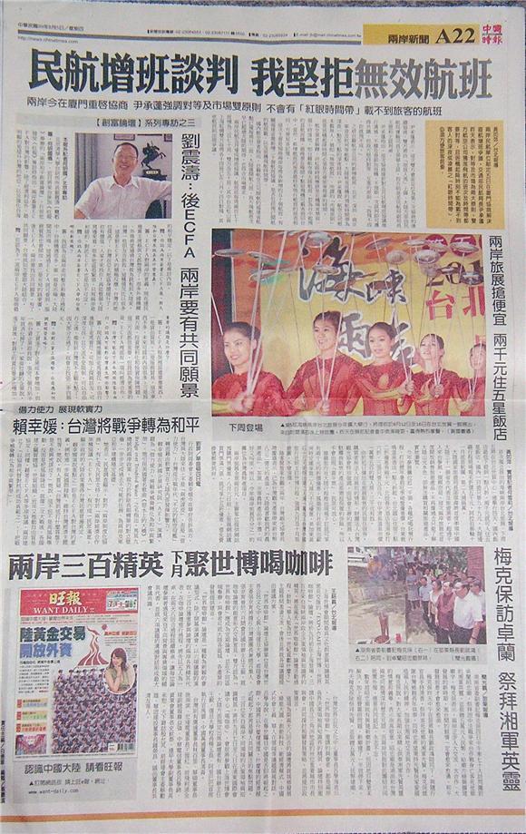 台灣主要報紙大陸版要聞標題一覽 (8月5日)