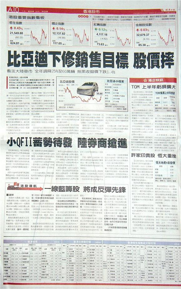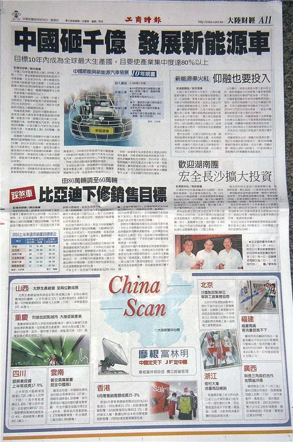 比亞迪汽車(1211)出口事業部總經理李竺杭表示,經評估後公司將全年汽車銷量目標下調25%至60萬輛,這也是第一家公開宣布調降全年銷售目標的大陸車廠,受此消息打擊,昨(8)日比亞迪股價下跌1.41%。