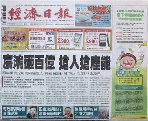 ◆經濟日報:宸鴻砸百億 搶人搶產能