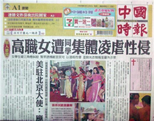 ◆中國時報:駭人聽聞 高職女遭同學集體凌虐性侵