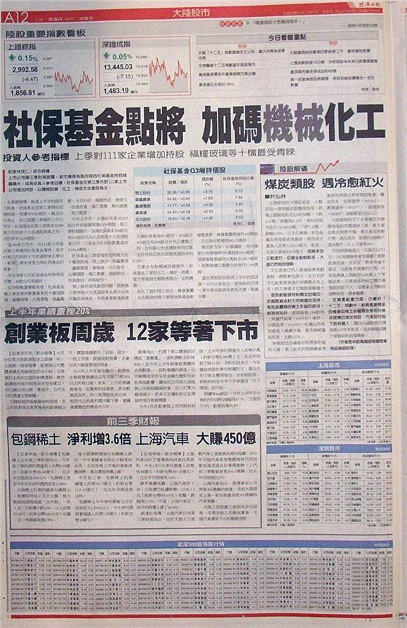 上市公司第三季財報披露,被市場視為風向球的社保基金持股陸續曝光,成為投資人參考目標,社保基金在第三季共對111家上市公司增加持股,以機械設備、化工、煤炭及地產股為主。