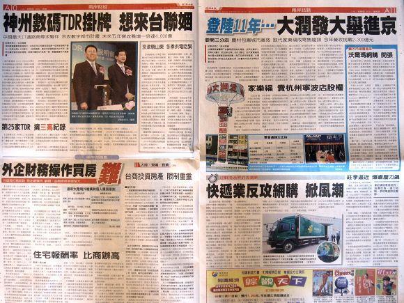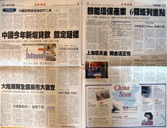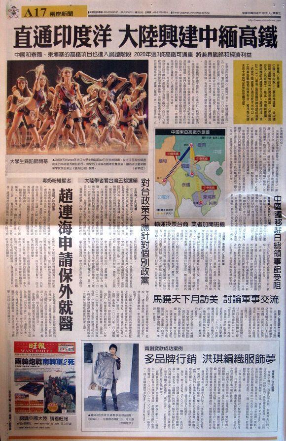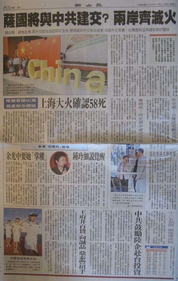 台灣主要報紙大陸版要聞標題一覽 (11月24日)