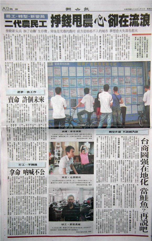 罷工潮伴隨大陸加薪潮,大陸的投資環境境愈趨惡化,使「轉型升級」的口號,在大陸台商和地方政府間喊得震天響。中小型企業迫於資金壓力,升得有氣無力,徬徨之餘,不少稍具規模的台商默默和大陸科研機構攜手啟動「研發在地化」,力圖再創生機。