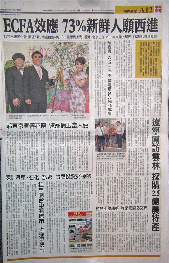 ECFA簽署後,兩岸人才交流意願更高,往來更密切。人力銀行業者調查顯示,近三成大陸上班族表示,赴台工作意願極高,近七成表示如有機會願來台發展;台灣也有高達七成三社會新鮮人考慮「登陸」發展,甚至有一成一職場新兵已捷足先登,找到對岸工作機會。