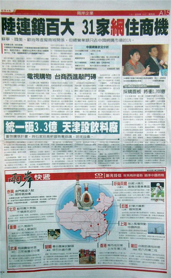 中國網路市場商機蓬勃,中國連鎖經營協會的最新統計顯示,截至5月底止,連鎖百大企業有31家自己建置網路平台,不過,總體營業額只占中國網購市場的1%。
