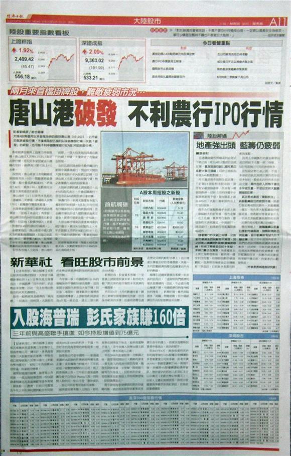 ■唐山港破發 不利農行IPO行情