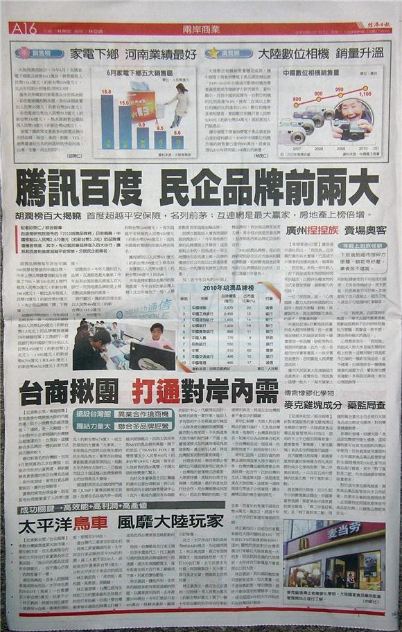 ■騰訊、百度 民企品牌前兩大