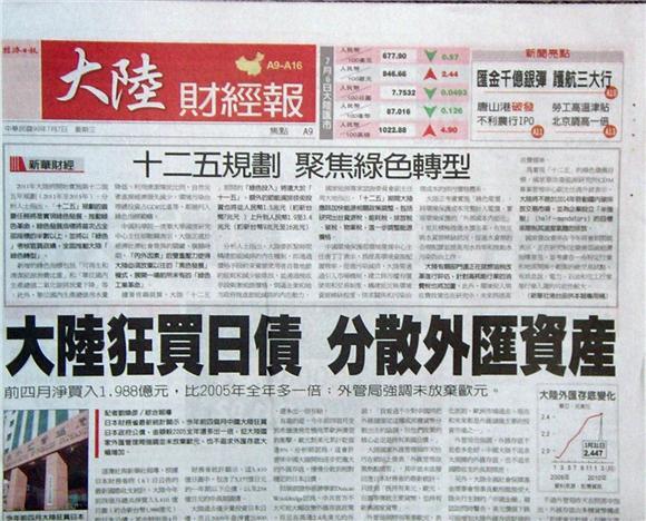 ■大陸狂買日債 分散外匯資產